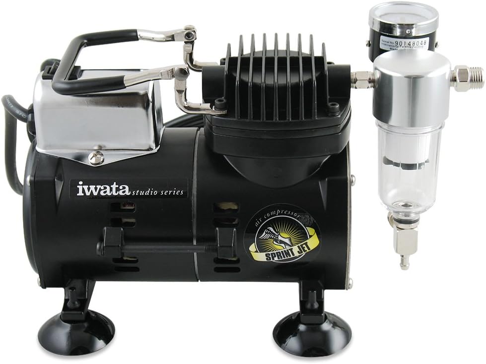 - Iwata Sprint Jet airbrush compressor is compact and quiet producing a preset working pressure of 20-25 PSI. It is a good choice for general purpose applications that require low to medium air pressure.