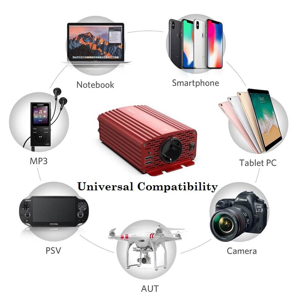 - 300w Pure Wave Converter: Pure sine wave converter is ideal for your equipment with inductive loads, the output current is more stable. It provides better protection for sensitive devices, less sound and electrical interference, less power consumption.