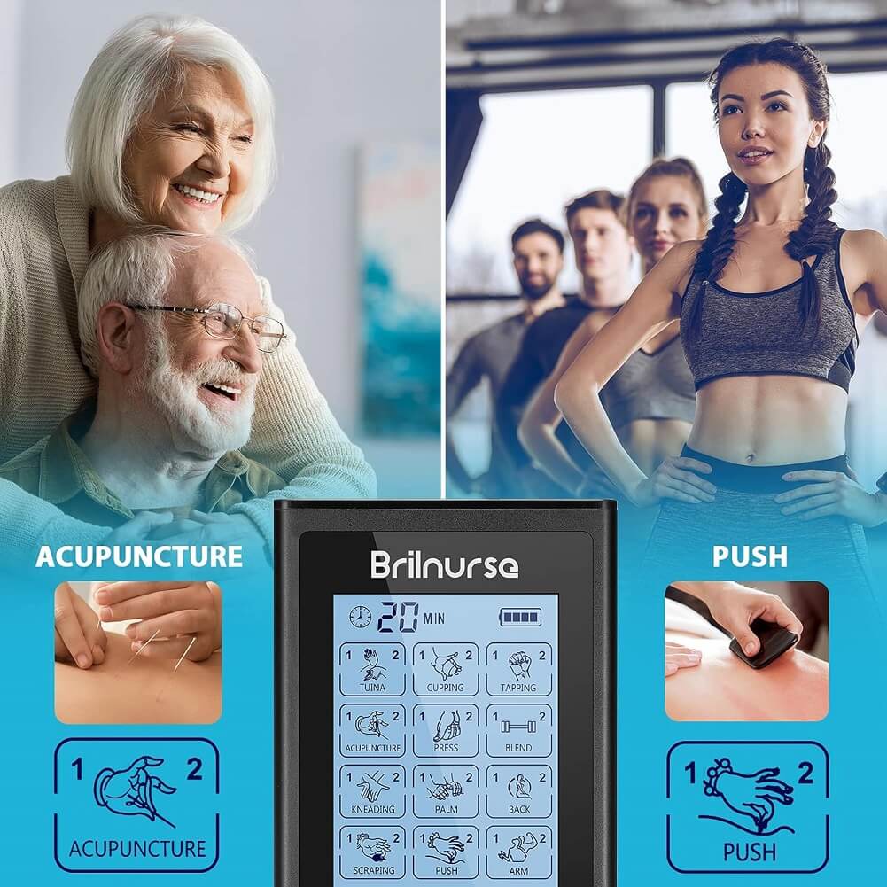 BRAND: Brilnurse MODEL NO: AS8011 4 Output Channels - A/B Independent Control: TENS machine supports 2 to 8 pads used, A(A1A2) and B(B1B2) independent output channels enable users to separately target different areas on the body for a custom massage at the same time. You can set different massage modes and...
