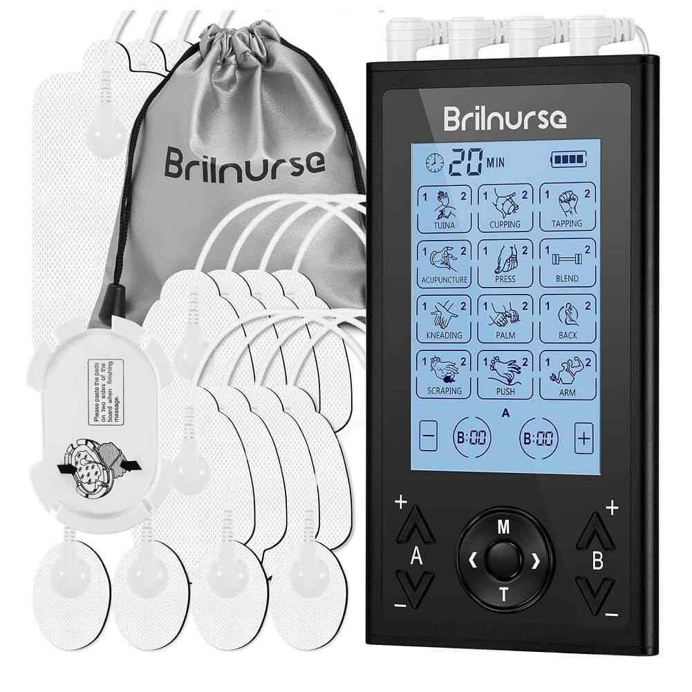 Brilnurse 4 Channels TENS Machine for Pain Relief with 16 Electrode Pads, Muscle Stimulator 24 Modes 20 Levels Intensity Rechargeable TENS Machine for Back Pain - Imported from UK