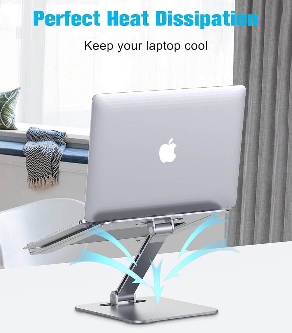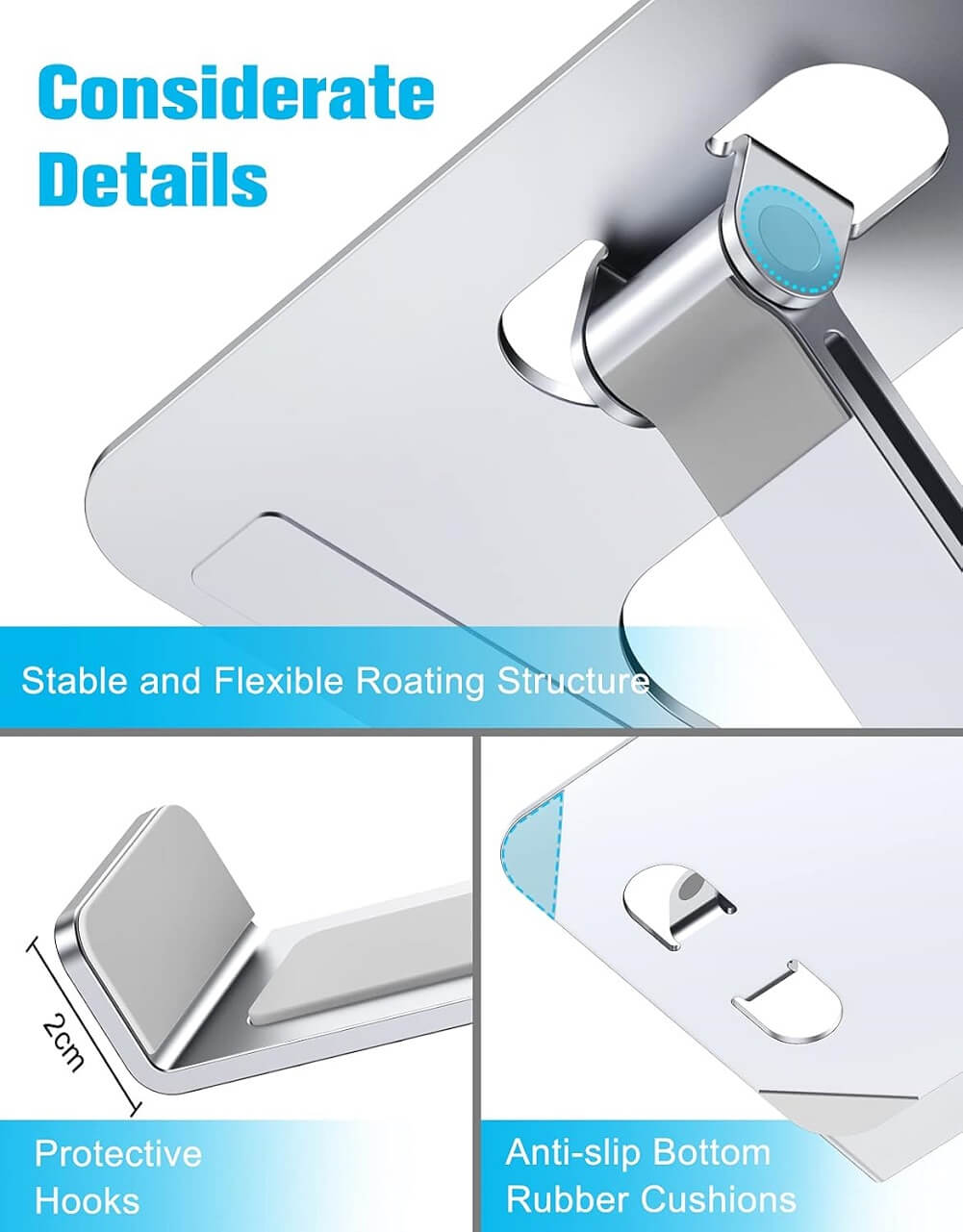 - Cooling & Ventilation: The laptop riser only has two holder hands but not a whole flat, so there is more space to enable the heat to vent and keep your laptop from overheating.