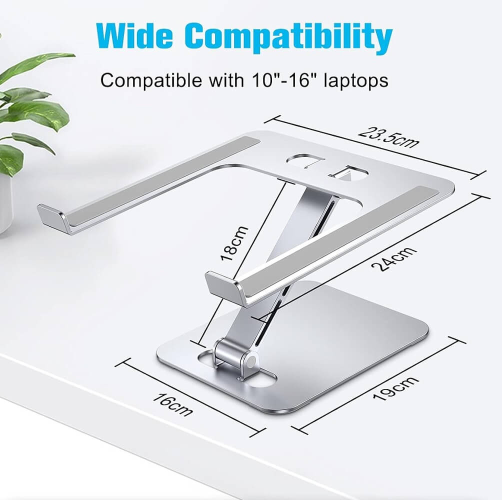 - Widely Device-Compatible: The sturdy computer stand fits varieties of laptops from 10" - 16". Compatible with MacBook, MacBook Pro, MacBook Air, Asus, Toshiba, Lenovo, Chromebook and more notebooks, all iPads and tablets.