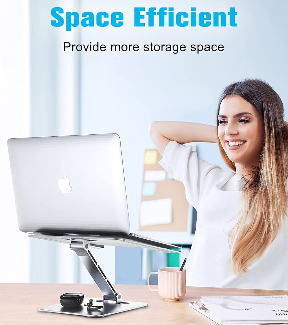 - Multi-Use & Practical: Adjustable laptop stand multi-use in many occasions such as offices, meeting rooms, libraries, coffee shops, kitchens and other occasions to hold the laptops, tablets, projectors, menus, books, etc. At the same time, the bottom storage slot can store small items such as mobile phones, keys, etc.