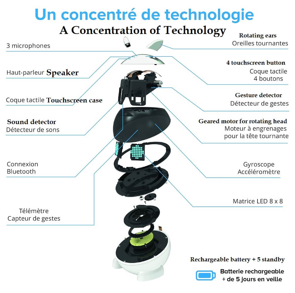 - A Technology Concentrate: The intelligent robot Winky is equipped with sensors and actuators to make unique and unforgettable interactive experiences with the child.