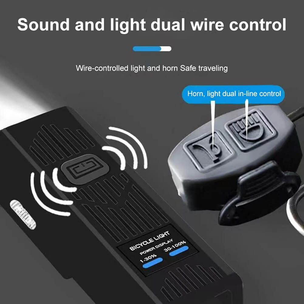- Loud and Versatile Speaker: Enjoy a new level of audio control on your bike rides with this headlight line-controlled high decibel speaker. Multiple sounds can be easily switched using the 120 dB split-line control switch, giving you an immersive sound experience every time you ride.