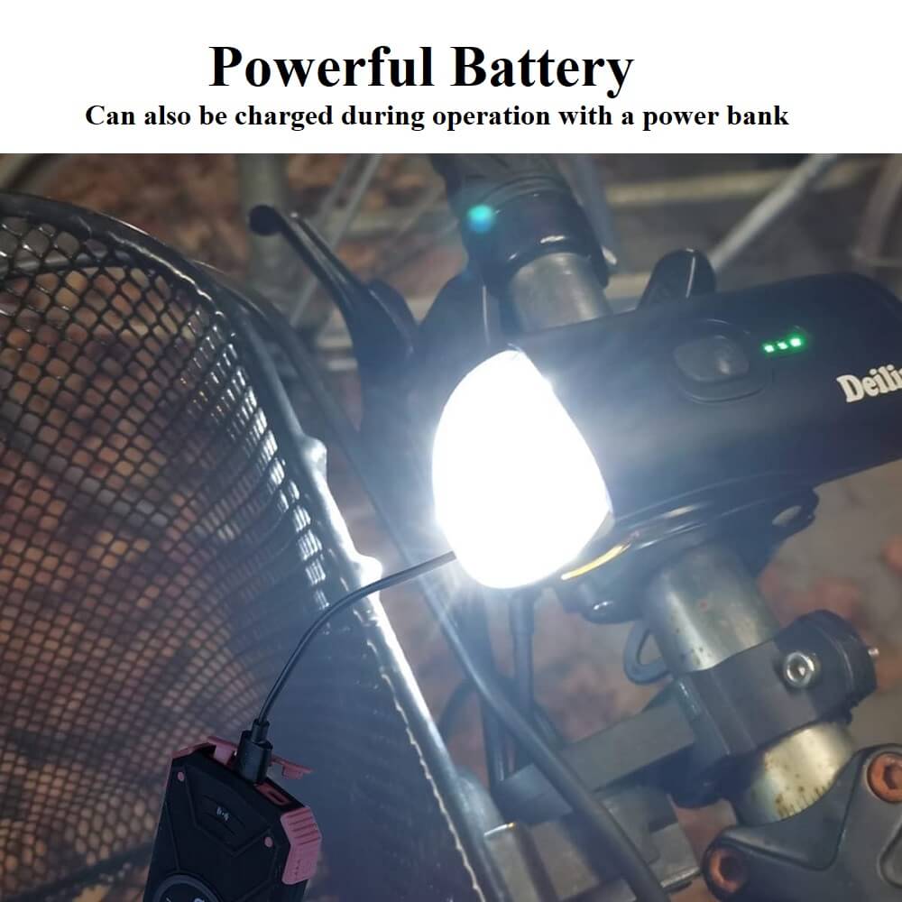 • 3 Light Modes and Smart Brightness Control: Deilin front light with ultra-bright 70/30 lux is completely sufficient for good lighting on the bike. The bicycle lights allow for good cycling in the dark. Equipped with intelligent adjustment mode and Osram LED, the brightness of the headlight automatically adjusts according to the ambient light intensity between 30-70 lux to maintain optimal visibility and battery power.