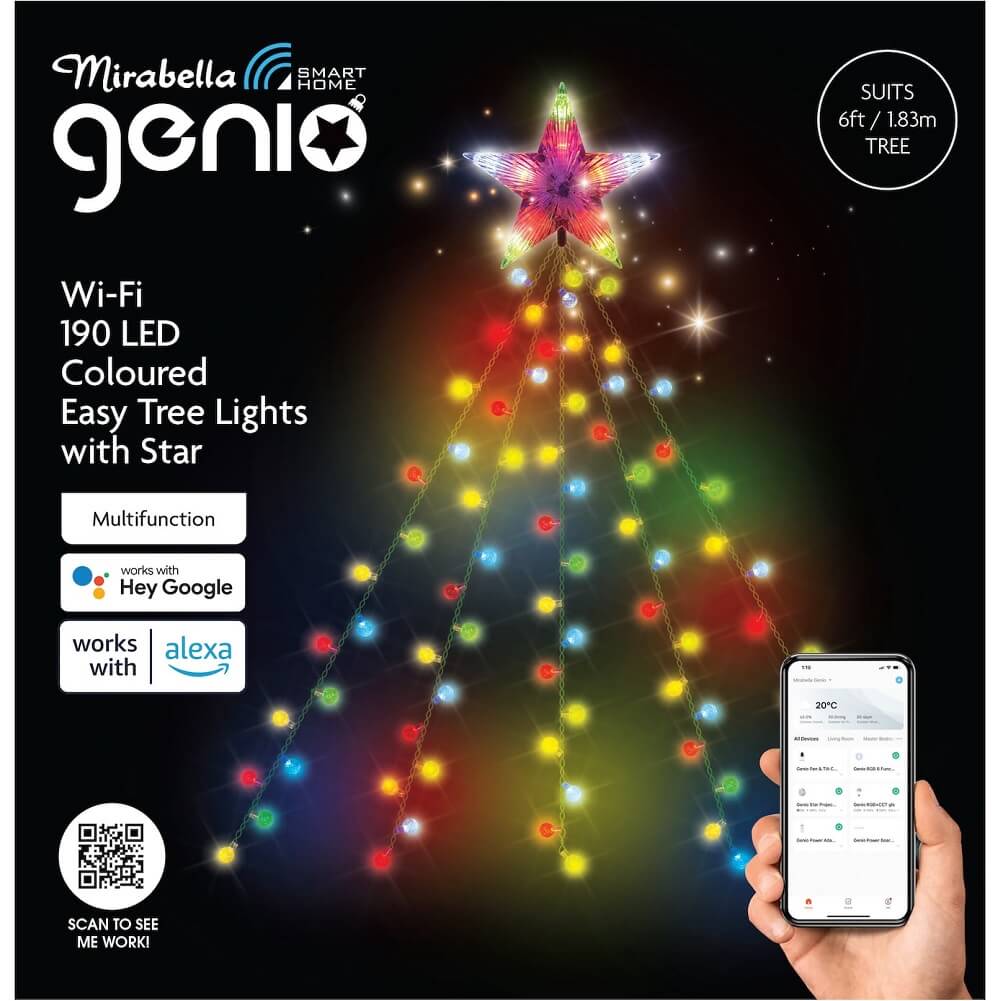 - Decorate your Christmas tree the smart way, with the Mirabella Genio Wi-Fi 1.8M 190 LED Multicolor Easy Tree Lights with Star.