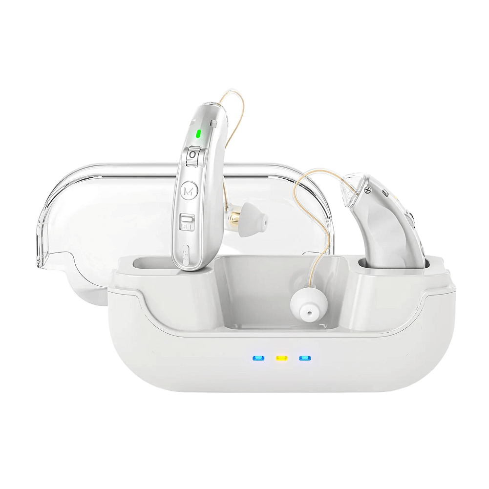 - Smart Behind-The-Ear Hearing Aids ZF-M909. Invisible, rechargeable BTE (behind-the-ear) hearing aid designed for people with mild to moderate hearing loss. Technology of adaptive feedback suppression and imported microphone for clear sound without whistling.