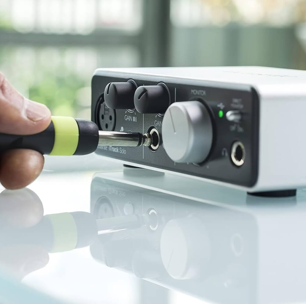 BRAND: Focusrite MODEL NO: iTrack Solo Record, podcast, and live stream high-quality audio quickly and simply. Gives you a microphone preamp from the best-selling Scarlett range with 48v phantom power. A dedicated guitar input lets you record your instrument directly and capture audio in the moment that’s true to the original...