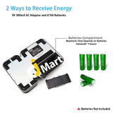 - Power Requirements: 6 * AA alkaline batteries (not included)or 9V DC 300mA adapter (pin negative)