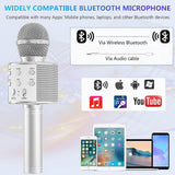 - EASY TO USE AND COMPATIBLE: 3.5mm audio jack and Bluetooth connection, the microphones can easily connect with all Bluetooth devices including Android IOS smart-phones, PC, laptops and APP such as YouTube, Facebook etc. Support for external TF cards (NOT INCLUDED). Connection distance up to 10m, you can take it dancing and singing freely.