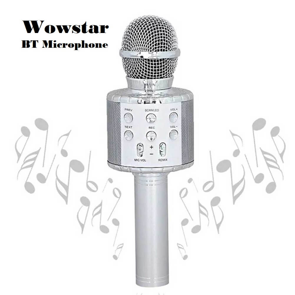 BRAND: Wowstar COLOR: Silver MULTIFUNCTIONAL MICROPHONE: Wowstar Portable hand-held wireless microphones can be used as a microphone, Bluetooth speaker, recorder, funny voice changer and FM radio. Ideal for home KTV/ Party/ Kids Singing, practising singing, playing music, listening to songs and recording anytime you want. WIRELESS MICROPHONE: This hand-held microphone is...