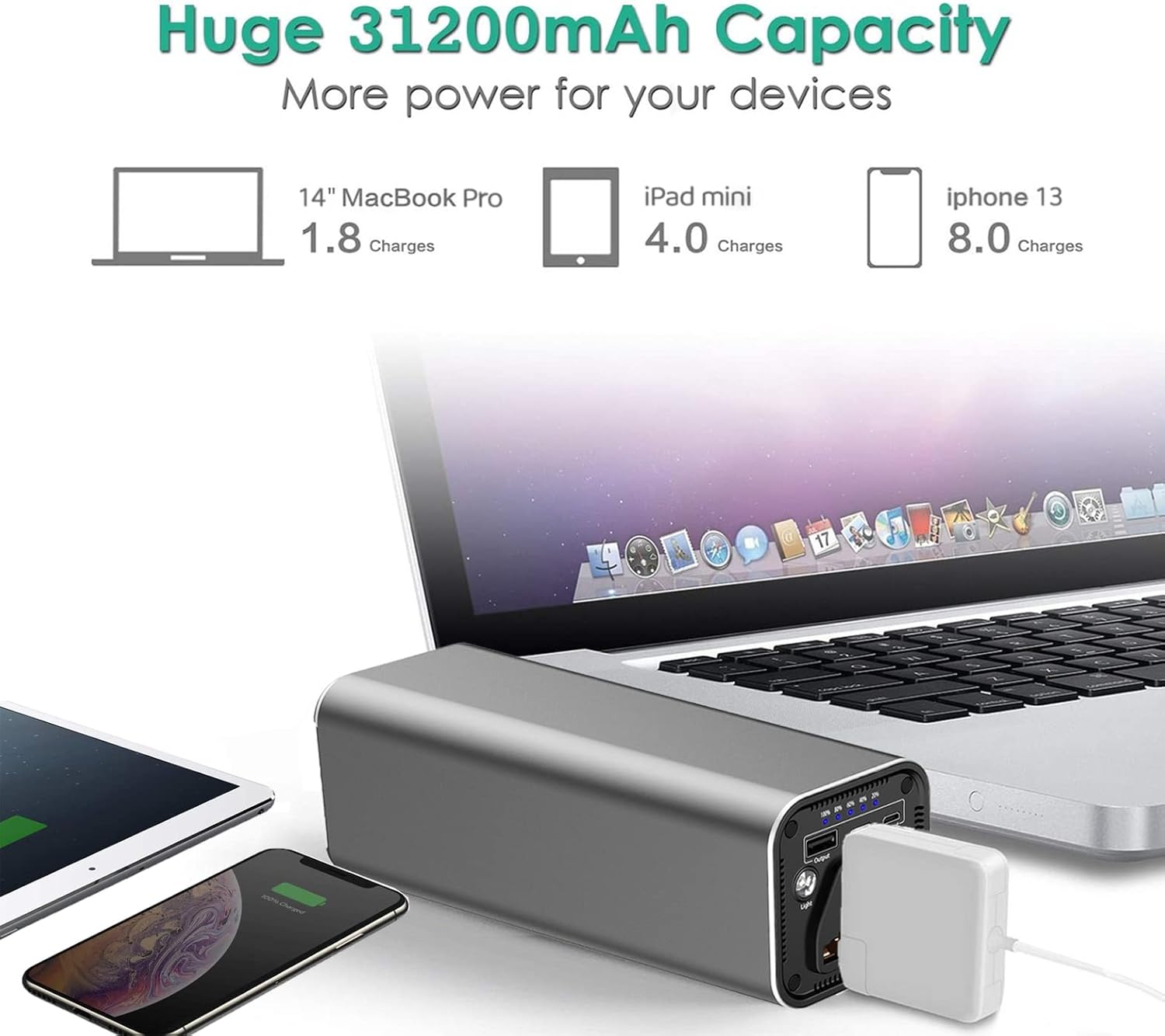 RSOEWXN AC Outlet Portable Laptop Power Bank, Universal 31200mAh 100W Travel Laptop Charger, Fast Charging External Battery Pack - Imported from UK