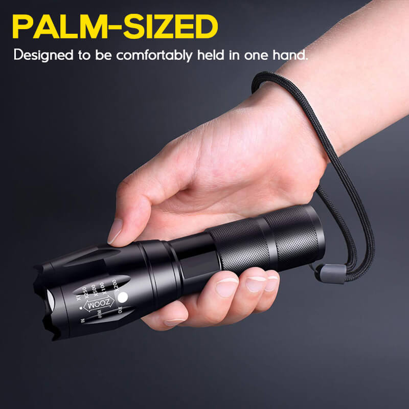 - Tactical Flashlight comes with ZOOM FUNCTION and MULTIPLE SAFETY MODES to render its services for any kind of scenario. Simply zoom in/out or switch on the safety mode to let it work!
