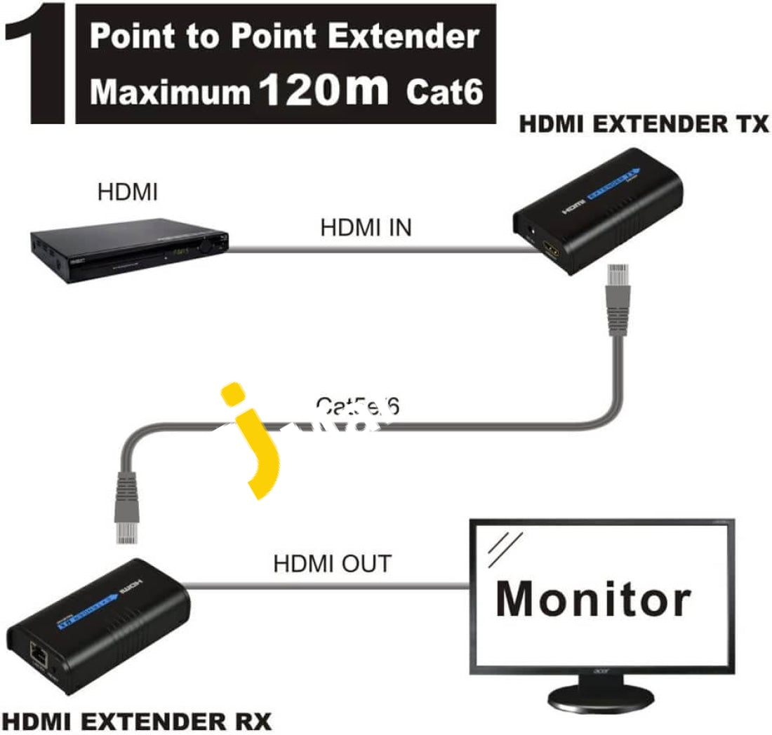 - It can transmit HDMI 1080P signal to above 120M by using UTP CAT6.