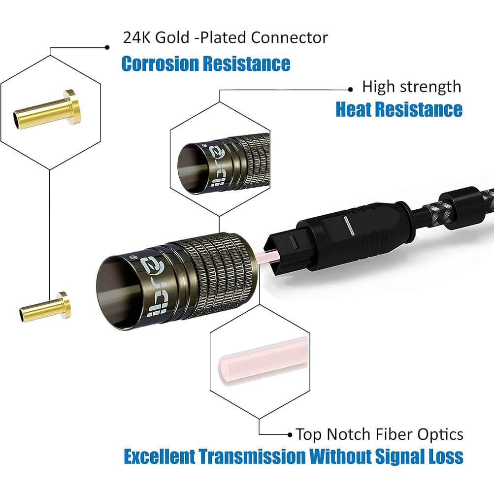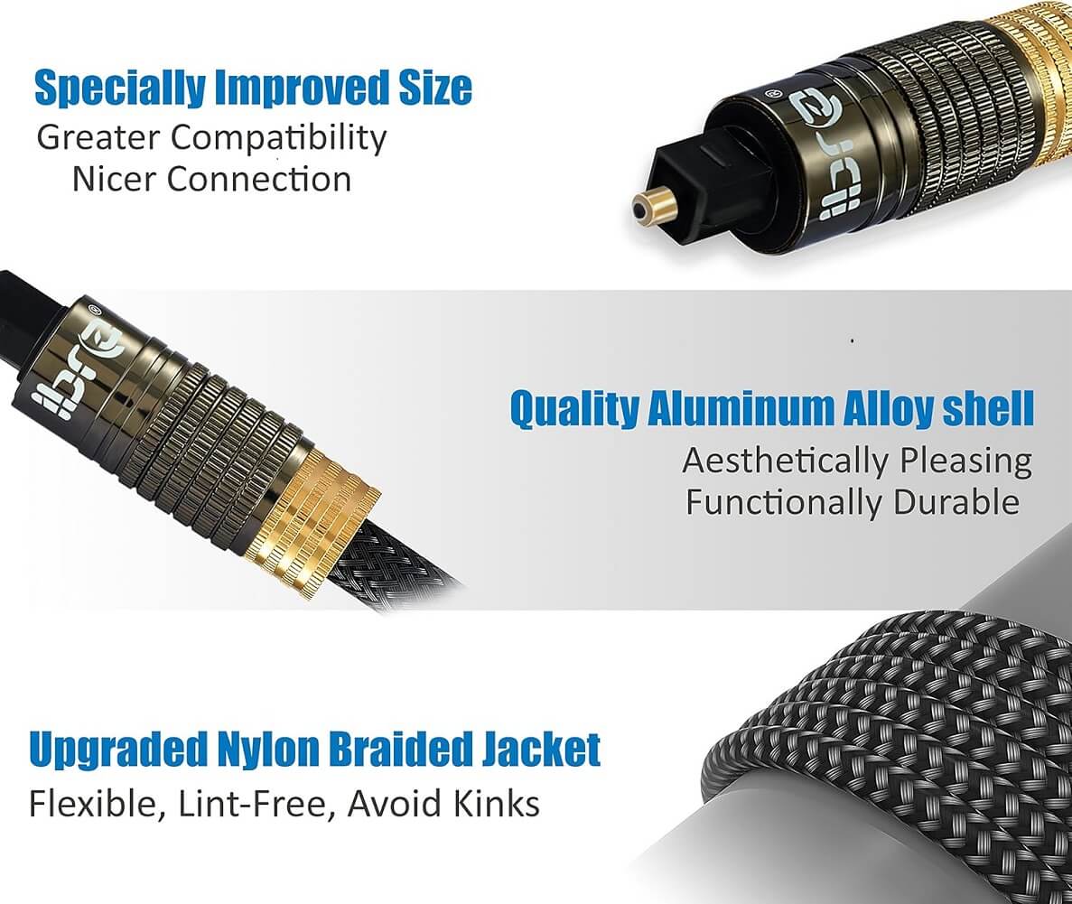 BRAND: IBRA Supported Interfaces: S/PDIF, ADATs, Dolby Digital, and DTS Fiber Optic Cable: Eliminates electromagnetic and radio interference Durable Cable Construction: PVC layer and mesh metal jacket sheathe the entire cable protecting it from nicks, cuts, and kinks. Metal Connectors: Heavy duty heads resist corrosion and provide maximum protection for the...