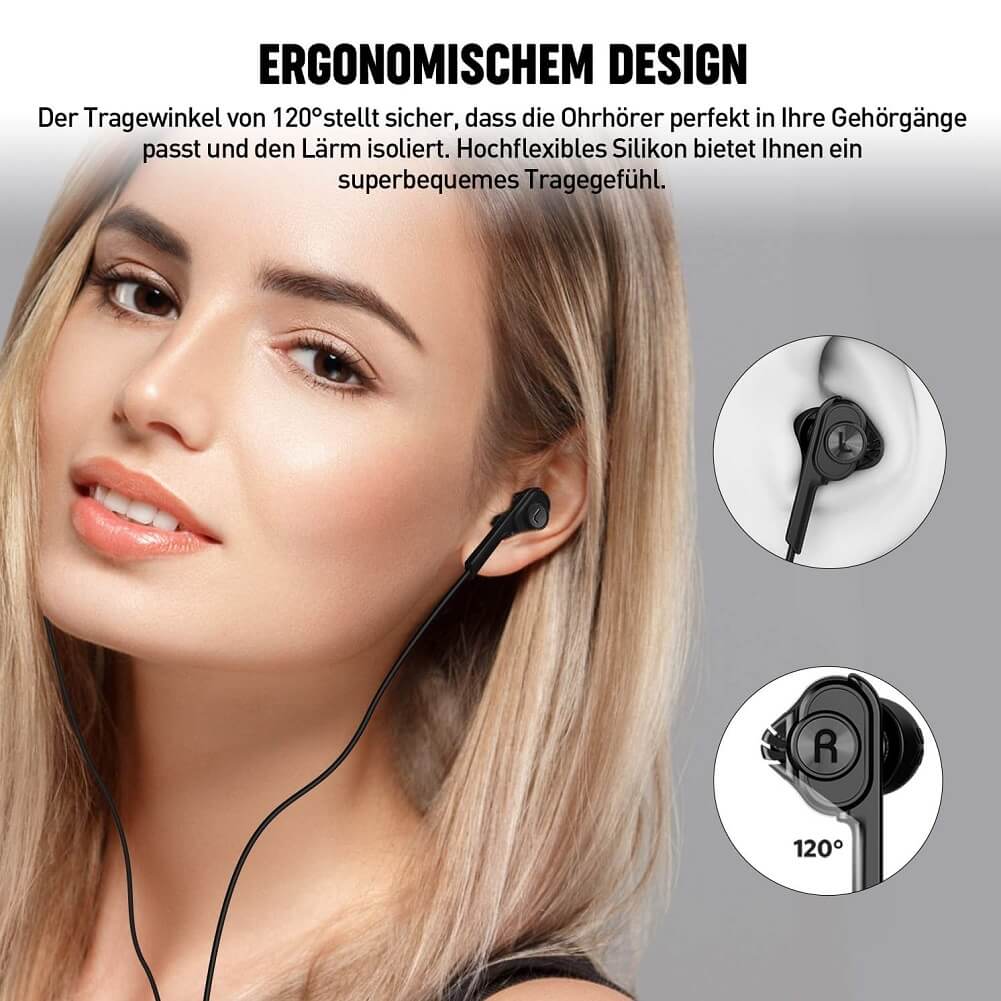 - Ergonomic Design: 120° wearing angle assures that the headphones will fit perfectly in your ear canals and isolate the noise. High-flexibility nipple-class silicone takes you super comfortable wearing.