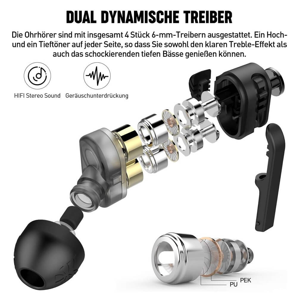 - Powerful Dual Dynamic Drivers: Pumps out the most profound bass are soaring highs enhance the superb sound with high definition and Exclusive tuning technology triband clear, natural, unique sensing technology to suppress high-frequency glitches.