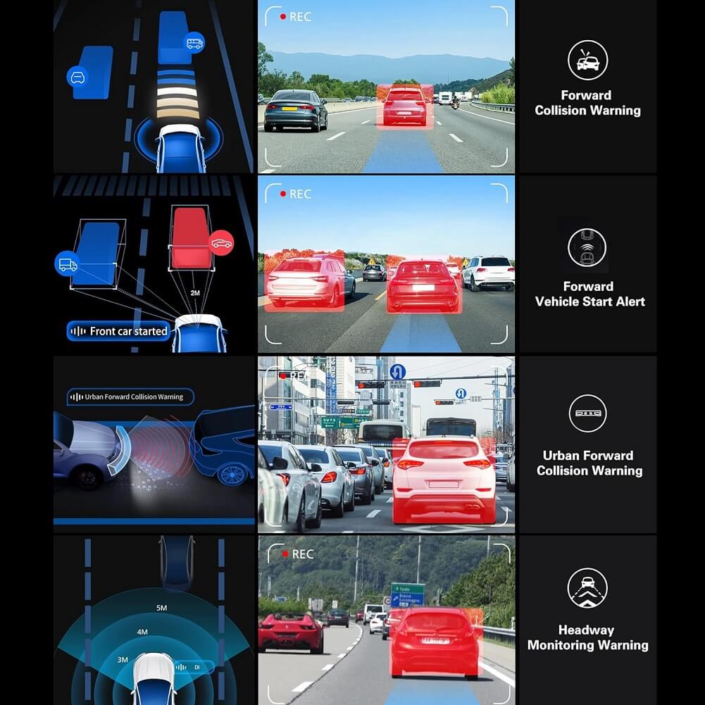 • Dashcam 2K with ADAS Voice Alerts: The Advanced Driver Assistance System (ADAS) detects your surroundings and has voice alerts in advance to warn you of safety problems. Including 4 ADAS alerts: Forward Collision Warning; Urban Forward Collision Warning; Headway Monitoring Warning; Forward Vehicle Start Alert. By default, the dash cam supports 1440P resolution and the ADAS algorithm, but you can increase the resolution to 2160P if ADAS is not needed.