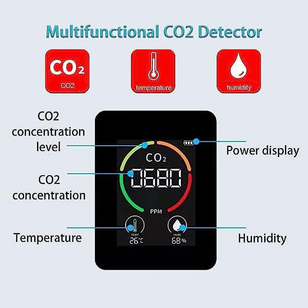 - Large LCD display, 3-in-1 design, you can see the carbon dioxide concentration, real time temperature and humidity data clearly.