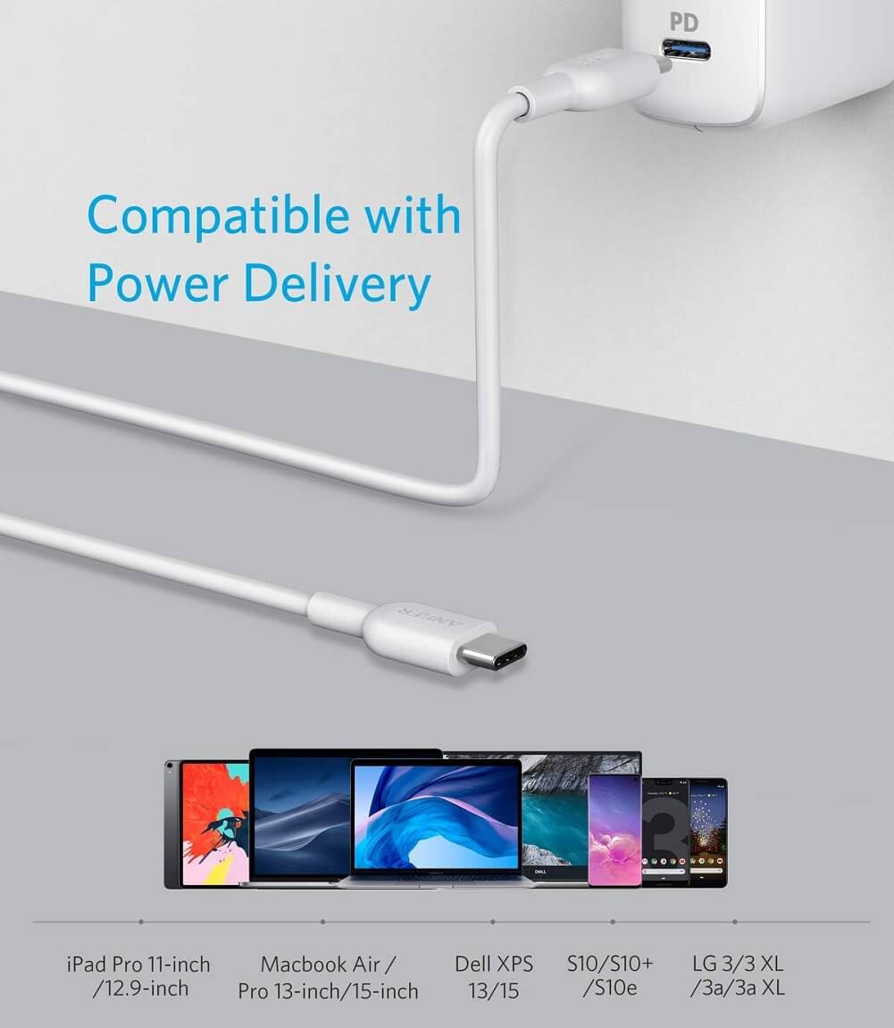 • Use Anker Instead: Pair your C port devices with USB-C chargers, including Anker's and various 61W, 30W, and 18W USB-C power adapters.