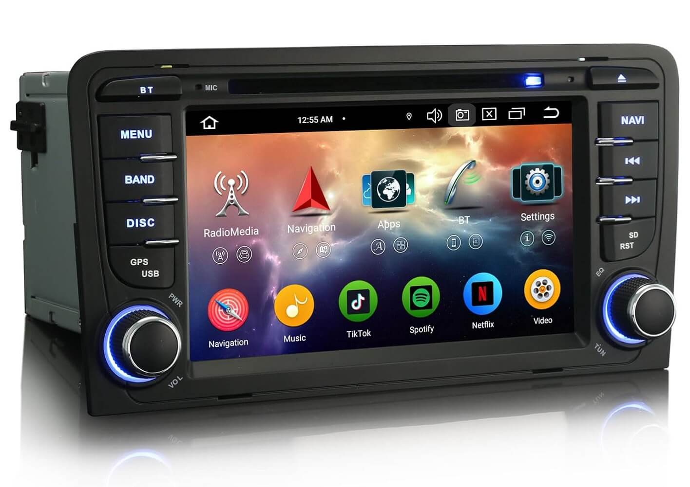 - Android 14, 8-Core, 4GB RAM+64GB ROM: 7-Inch GPS radio for AUDI A3 (2003-2011) S3 RS3 RNSE-PU with the powerful latest Android 14 system, you can enjoy a smooth and responsive user experience. Quick startup, IPS capacitive touchscreen. CPU architecture MT8667 1.5GHz*4+2.0GHz*4 64-bit 12nm Cortex 8* A53. 2 cards/3 USB with extended memory up to 5*256GB. 4*48W stereo sound and subwoofer amplifier. Integrated Canbus decoder, DVD, TF, USB, RDS, WiFi. Supports split screen and allows two applications to run side by side.