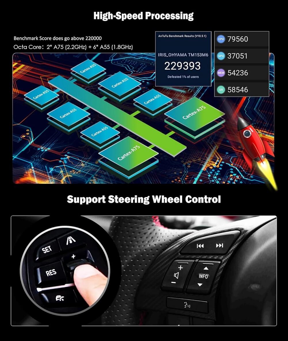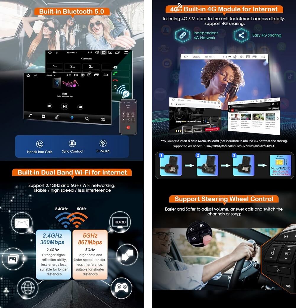 - Support Steering Wheel Control & GPS Navigation: Support steering wheel control, you can use this function to control your music or volume in steering wheel; For GPS function, you can download online GPS apps like Waze, Sygic, and other apps in Play Store or get offline map source from map providers to use satellite navigation. And you can use the navigation while listening to music or radio.