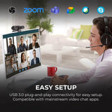 • It supports USB 3.0 plug and play for easy setup and stable connection. It has a built-in privacy shutter, is able to rotate 360°, and can be mounted on a tripod. (tripod is not included)