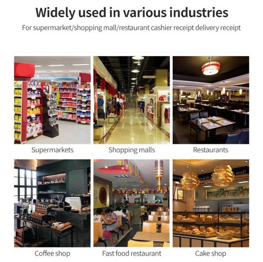 - CONVENIENT STRUCTURE: Has a convenient paper install structure, and directly put the cash register paper face down to avoid ink, ribbon, carbon ribbon.