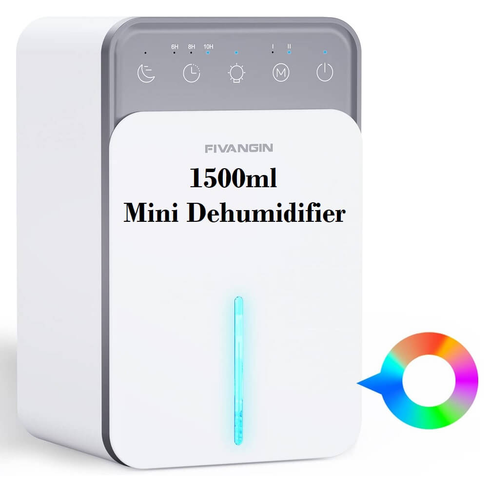 FIVANGIN 1500ml Dehumidifier with 7 Colors Light for Removing Damp Mold & Moisture, Silent Mini Dehumidifier for Home Bedroom Bathroom Garage Wardrobe - Imported from UK