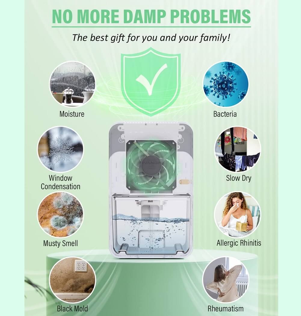 BRAND: FIVANGIN MODEL NO: D1 Large Capacity & High Efficiency Dehumidification: The 1500ml dehumidifier for home can quickly remove excess water in indoor air, reduce humidity in the air, effectively prevent the generation of musty odors and create a comfortable and healthy environment for you. 3 Dehumidification Modes & Energy Saving: Dehumidifier...