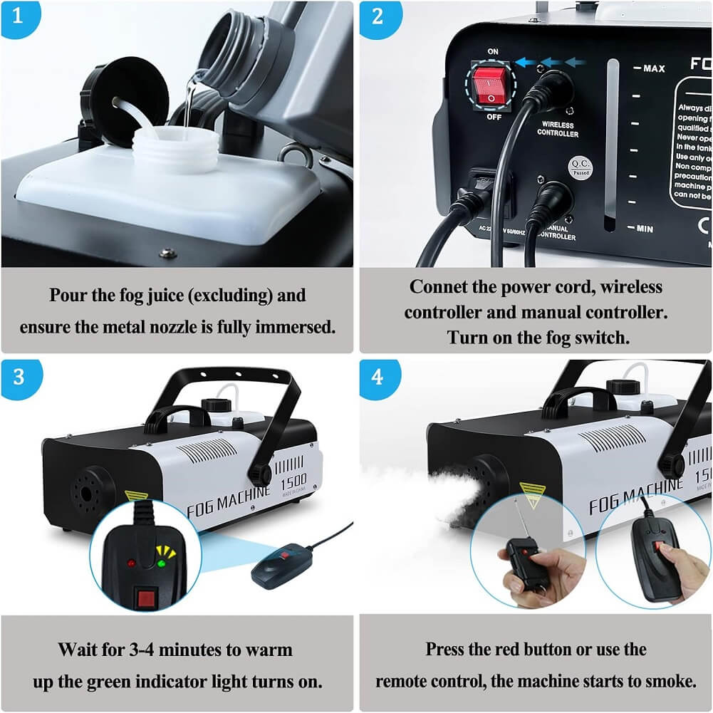 - Easy to Use: Simply add fog juice/fluid (Not included), turn on the fog machine, and control it using 2 sets of controllers.