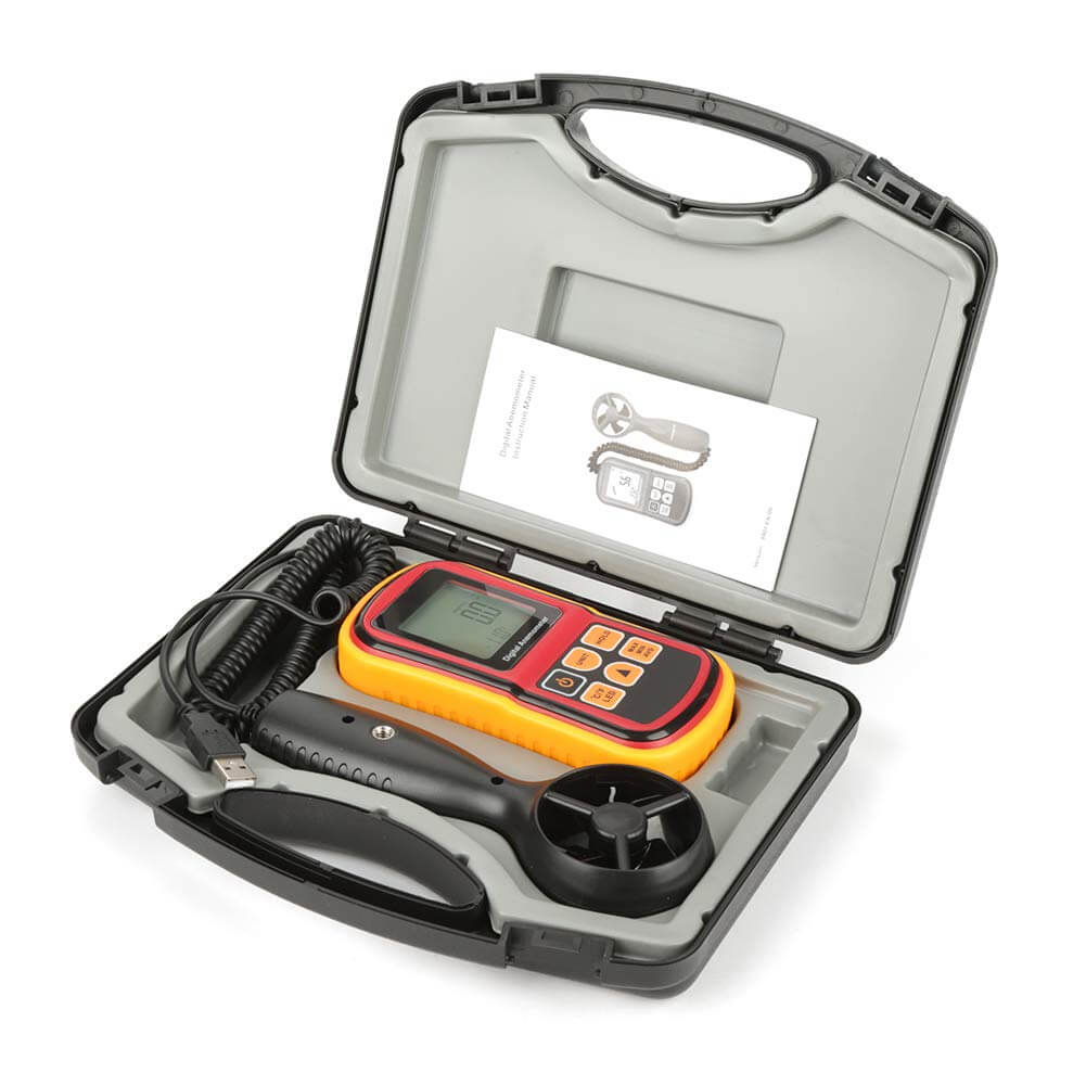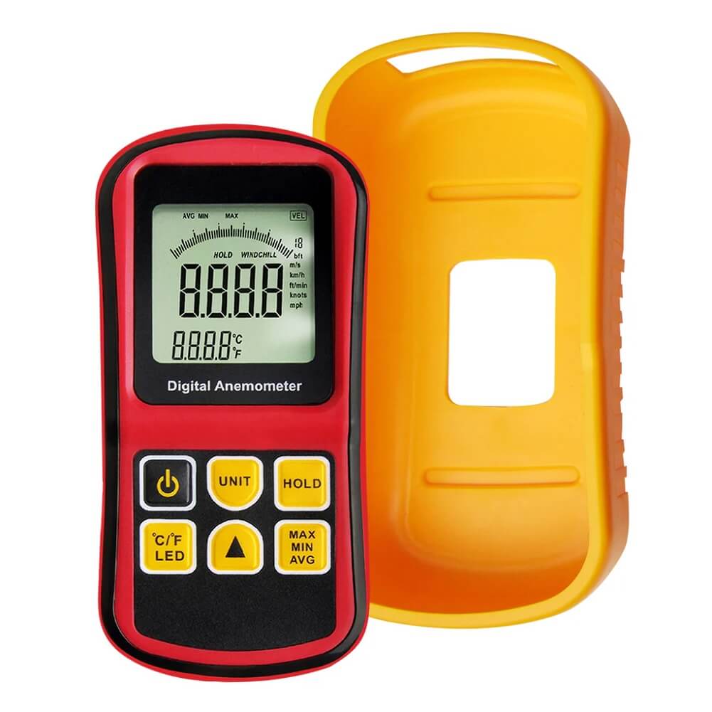 - Handheld digital anemometer designed to measure wind speed and air temperature quickly and accurately.