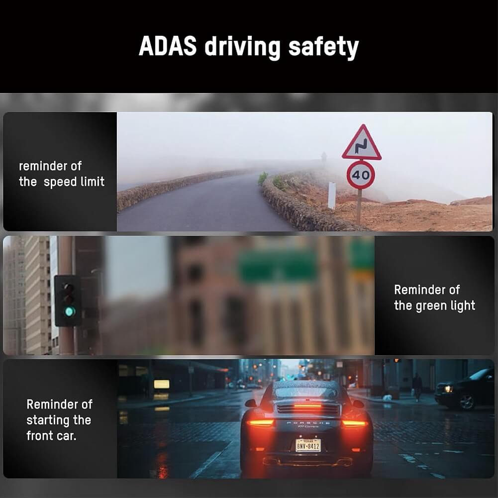 - ADAS supported: “Traffic light turn green”, “Speed limit recognition”, “Front car start remind”.