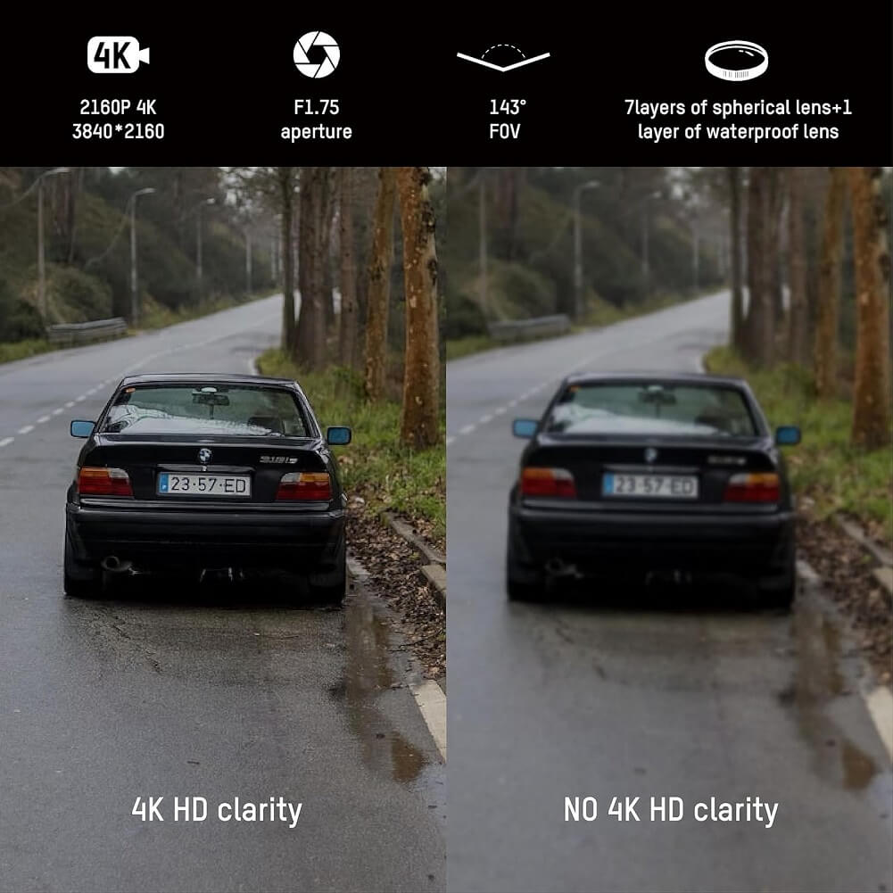 - Up to 2160P high resolution, with horizontal 118°wide angle, diagonal 143°.