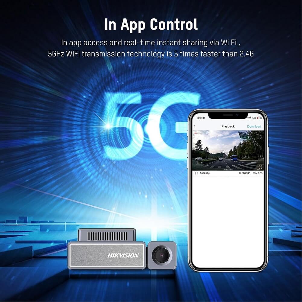 Hikvision C8 4K Dashcam Wide-angle Lens Built-in Microphone & Speaker WiFi GPS G-Sensor App Control Voice Recognition Up To 256GB ADAS Features - Imported from UK