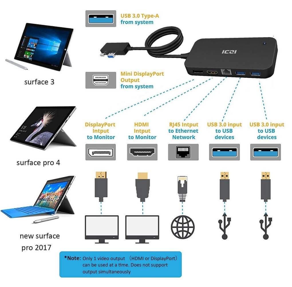 ICZI 7-in-1 Multifunctional Surface Docking Station for Microsoft Surface 3, Surface Pro 3 & 4 w/HDMI DisplayPort USB Ethernet Audio (Amazon Container Product as it is, No Warranty, No Guarantee, No Return, No Exchange) - Imported from UK