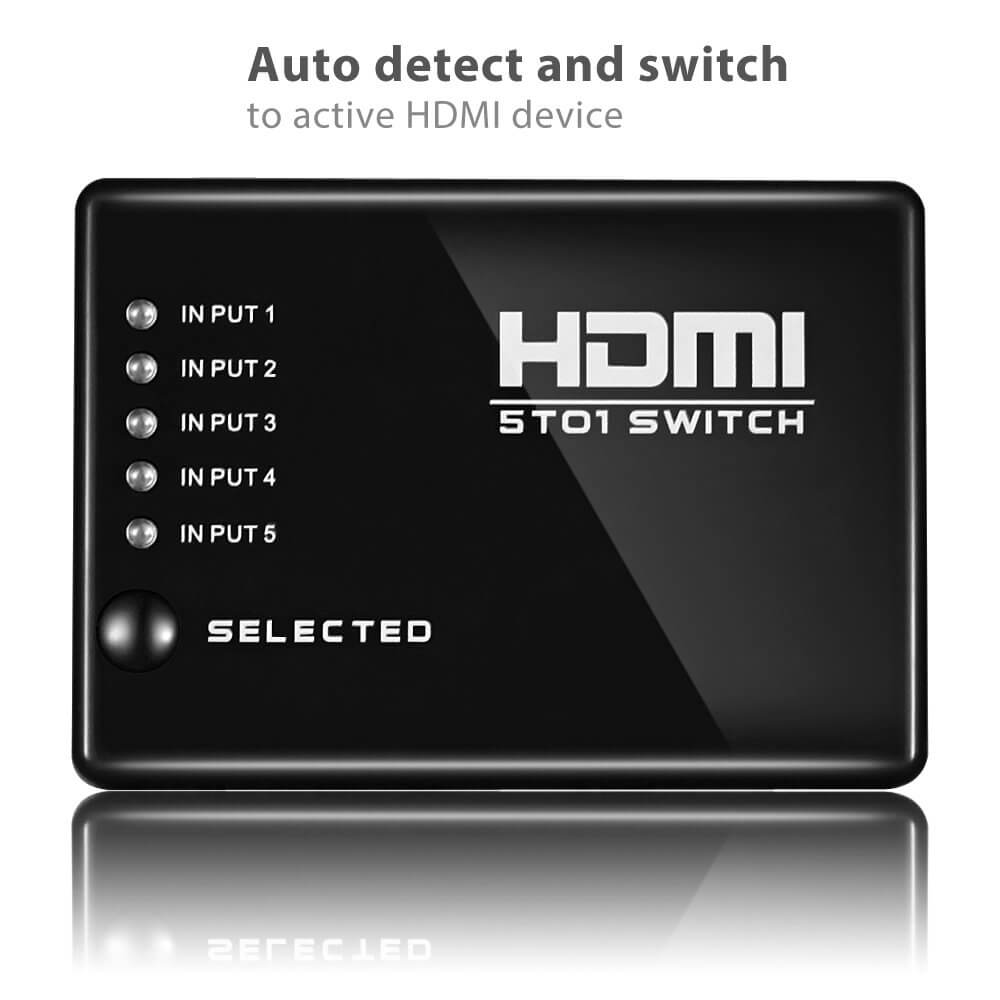 HDMI Switcher, 5 Port Mini 1080p Selector Box, Auto Switch (Remote Not Included) - (Amazon Container Product as it is, No Warranty, No Guarantee, No Return, No Exchange) - Imported from UK