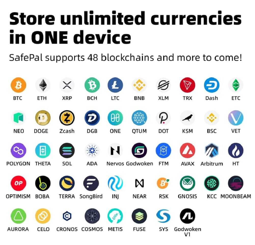 - Unlimited Currencies: Supports 100+ blockchains, you can now manage unlimited cryptocurrencies all in one SafePal S1.