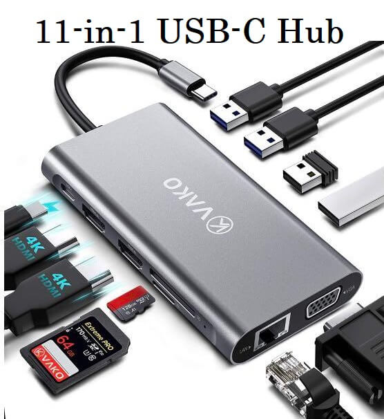 VaKo 11-in-1 USB C Hub Triple Display USB C Docking Station with Dual HDMI, VGA, PD3.0, 2x USB3.0 & 2x USB2.0, Gigabit Ethernet, SD/TF Card Reader - Imported from UK