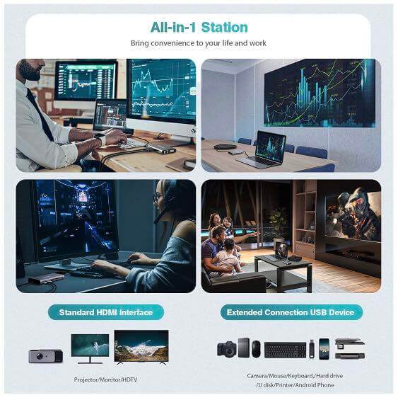 - 100W PD Charging - With a USB-C PD charging port, supports 100W(20V/5A)power pass through via separate power supply (not included), the charging time is reduced double faster than non-PD, which helps keep your laptop and other connected devices charged.