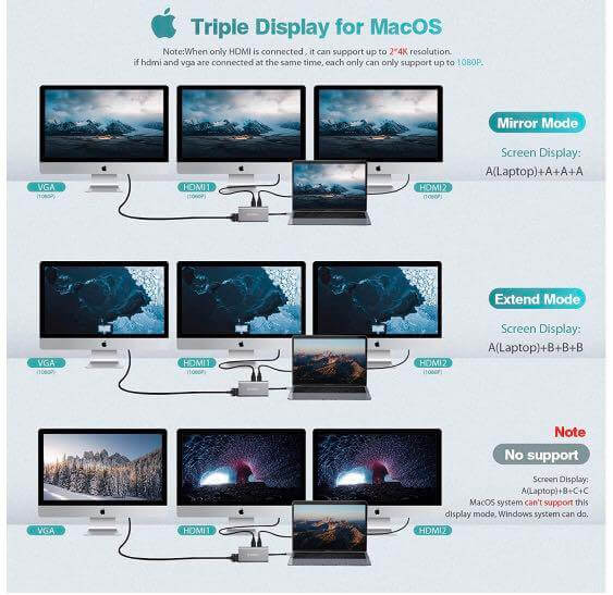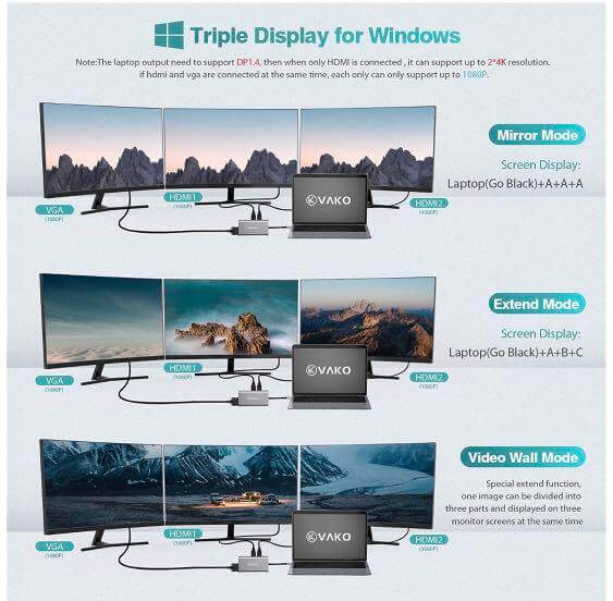 BRAND: VaKo MODEL NO: UCN3270 Dual 4K Vivid Output - Supports a Dual HDMI display up to 3840 x 2160@30Hz .(Mirror Mode/Extend Mode) 100W PD Charging - With a USB-C PD charging port, supports 100W(20V/5A)power pass through via separate power supply (not included), the charging time is reduced double faster than...